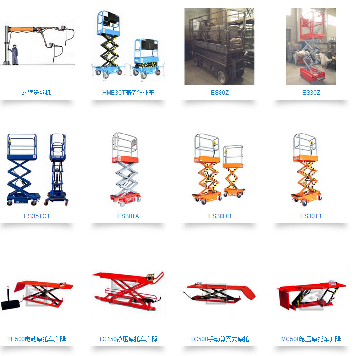 目前,我公司主要產(chǎn)品有液壓升降平臺(tái)、花木搬運(yùn)設(shè)備、懸臂送絲機(jī),同時(shí)我們還生產(chǎn)液壓升降臺(tái)相關(guān)附件等。公司產(chǎn)品具有設(shè)計(jì)新穎、結(jié)構(gòu)合理、升降平穩(wěn)、簡(jiǎn)單操作、維修方便等優(yōu)點(diǎn),適用于園林、倉(cāng)庫(kù)、車站、工廠生產(chǎn)線等需要進(jìn)行物料搬運(yùn)及裝卸的場(chǎng)所,是省時(shí)省力,安全高效的搬運(yùn)設(shè)施。