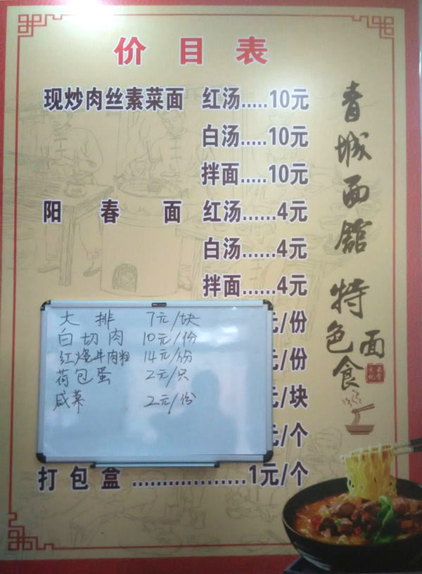 武進(jìn)區(qū)青城面館經(jīng)營面積280平方米左右,主要特色是現(xiàn)炒肉絲,素菜蓋澆面,面館創(chuàng)始人今年63歲的王蘭珍,她對(duì)美食有著高于常人的悟性。她開過饅頭店,開過小飯館,承包過食堂,燒菜、取料樣樣在行,吃過的人常常贊不絕口。 20世紀(jì)初,在跟德興面館的老師傅學(xué)了做面手藝后,王蘭珍萌生了開一家面館的想法,除了可以養(yǎng)家糊口,最重要的是想讓更多人嘗嘗自己的手藝。于是,她在自己的住處擺起了幾張桌椅,面館就算正式營業(yè)了。因?yàn)榧易∏喑菢,王蘭珍干脆取名“青城面館”。 “從早上5點(diǎn)多開始營業(yè),到下午1點(diǎn)多打烊,一天至少要賣掉300多碗面,用掉近160斤面粉。”為何青城面館的面條如此受歡迎,兒媳婦陸偉紅說秘訣在于湯頭和澆頭。湯頭分白湯和紅湯,白湯是由10斤豬骨頭熬制而成,湯色清澈而味道濃郁;紅湯以骨頭湯作底湯,加入茴香、甘草、草果等20多種中草藥,以及糖、醬油等調(diào)味品,鮮而不腥,散發(fā)出陣陣香味。 和一般面館事先燒制好澆頭,放在盆里供客人選擇不同,青城面館的澆頭都是一份份現(xiàn)炒的,特別講究食材的新鮮。就拿暢銷的肉絲蔬菜紅湯面來說,要先起猛火,把肉絲、木耳、蘑菇、青菜等食材放一起煸炒至香,然后澆在撈起的面條上。一碗面出來,現(xiàn)炒的澆頭與面條融合,味道香郁至極。 遙觀人的早晨,醒得有些早。對(duì)很多遙觀人來說,美好的一天是從青城面館開始的。那一碗碗現(xiàn)炒的蓋澆面,筋道爽滑、醬香味濃,溫存著他們的胃與記憶,帶來刻進(jìn)骨子里的家鄉(xiāng)味道。