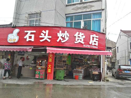 湖塘花東街上的“石頭炒貨店”是20多年的老字號(hào)了。上個(gè)世紀(jì)90年代,二十郎當(dāng)歲的“石頭”一一石愛軍從徐州來到武進(jìn),就在這條街上擺了個(gè)炒貨攤!皫灼椒矫椎男〉?cái),邊上架個(gè)大鐵鍋,炒出的瓜子、花生、蠶豆,鋪在竹篾上篩過、冷卻后就可以賣了!笔瘣圮娀貞,街坊鄰里冒著冬日的嚴(yán)寒,擠在地?cái)偳皣L著剛出鍋的瓜子的場(chǎng)景,還歷歷在目。20多年過去了,鄰居們都成了最熟悉的親人,從年輕姑娘到抱著孫子的老人,大家還是最愛吃石頭炒的瓜子。而炒貨店的店面也擴(kuò)大了,并且在湖塘另開了多家分店。 生意最好的還是花東街上的老店。不大的店面,被一袋袋瓜子、花生、蠶豆、核桃堆得滿滿的,空氣里也滿滿都是堅(jiān)果的香氣。超大瓜子唇齒留香,去皮瓜子鮮香入昧,南瓜子皮薄肉厚,還有開心果、手剝松子、小油果、核桃、碧根果、小黃豆,以及炒米糕、蛋卷、麻松條、紫薯干、地瓜干、山芋片、鍋巴、芝麻糖、山楂、麻花、葡萄干….這么多美昧都是老板親手制作。愛吃點(diǎn)什么,就用一 長(zhǎng)柄勺鏟點(diǎn)兒什么,最質(zhì)樸簡(jiǎn)單的包裝袋里,裝著的是屬于這條老街居民記憶里的味道,穿過幾十年的時(shí)光,仍然鮮活生動(dòng)地銘刻在每一個(gè)人的里。 “少東家”石榮沖就是在這個(gè)老店、這條老街長(zhǎng)大的。他說目前自己炒瓜子的技藝還沒到火候,還在跟著父親學(xué)習(xí)的階段!碧暨x原料、炒制工序,每一步都有學(xué)問在里頭!蹦玫陜(nèi)的銷售冠軍“內(nèi)蒙大瓜子”來說,這種來自內(nèi)蒙、經(jīng)過充足日照的葵花子每顆長(zhǎng)度近2厘米,個(gè)頭特別大,也十分飽滿。拈一顆大瓜子,就連嗑起來的聲音也分外清脆。外皮很容易與內(nèi)仁剝離,碩大的瓜子仁口感十分香脆,與別家作料用得很足、吃起來特別鮮咸的瓜子不同,這種大瓜子更注重烘托原昧,淡淡的咸昧在舌尖掠過,剩余的都是屬于瓜子的天然香甜。