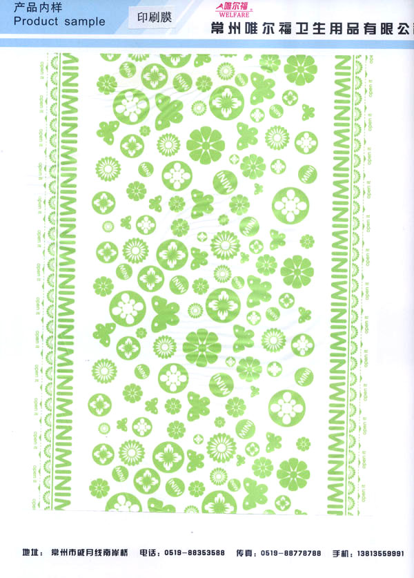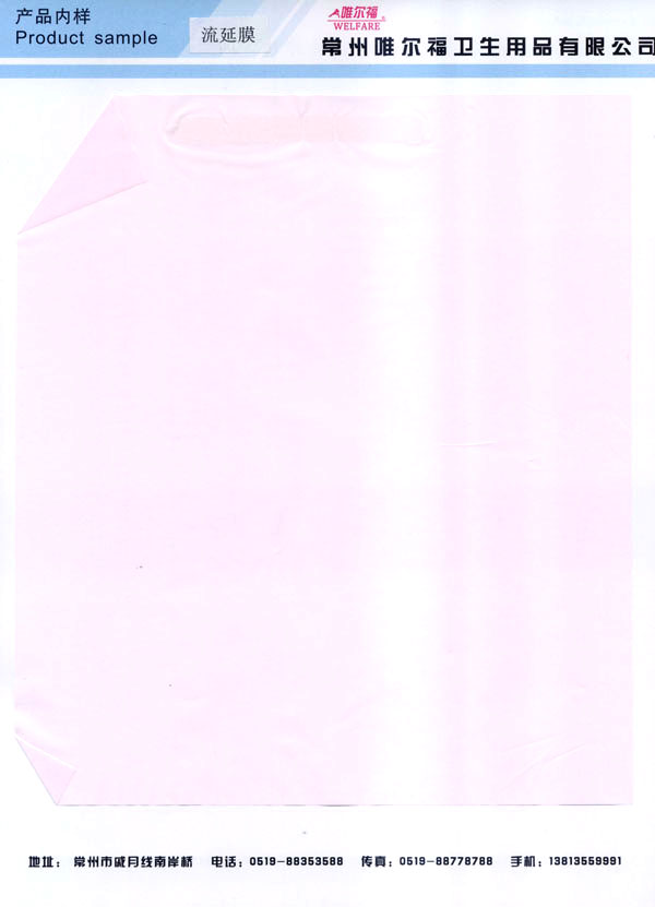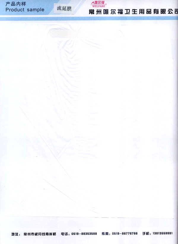 常州唯爾福衛(wèi)生用品有限公司是一家獨資企業(yè),地處滬寧高速、沿江高速,常州橫山出口交匯處,交通便利、環(huán)境清新。 常州唯爾福衛(wèi)生用品有限公司創(chuàng)建于1998年,公司占地2.5萬平方米,員工165人。 公司現(xiàn)有各類生產線20條。公司現(xiàn)已發(fā)展成為各項管理先進、技術力量雄厚,全年流延膜產量9000噸,華東地區(qū)最具規(guī);牧餮幽どa基地。 公司專業(yè)生產9—80克流延膜,15—80克透氣膜,及各類印刷膜。優(yōu)極柔版印刷,各種復合膜。廣泛適用于婦女衛(wèi)生用品、嬰兒紙尿褲、成人紙尿褲、成人床墊、寵物墊、醫(yī)用薄膜制品等領域。多年來公司致力于研究和開發(fā)適應市場需求的新產品來滿足廣大客戶的需求。