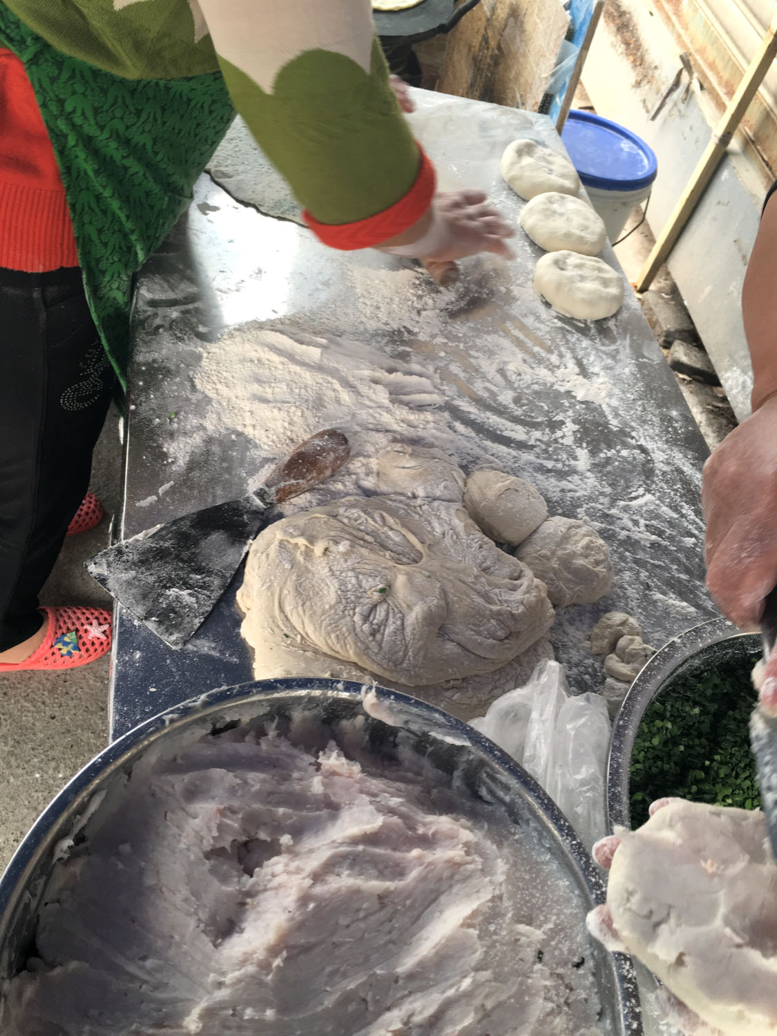 油酥餅(圖3-4)、糍團餅(圖5-6)、韭菜餅(圖7-8)   油酥餅每天晚上做,涼了更好吃,更酥更脆,里面都是很香的黑芝麻;糍團餅,每天中午擺攤熱了煎鍋開始煎,糯米做成,用菜籽油煎至金黃,餡兒是黑芝麻瓜子仁;韭菜餅是最受歡迎的,每天都有好多人排隊來買。供應(yīng)時間:每年的4月份到11月份 下午1點到5點半。