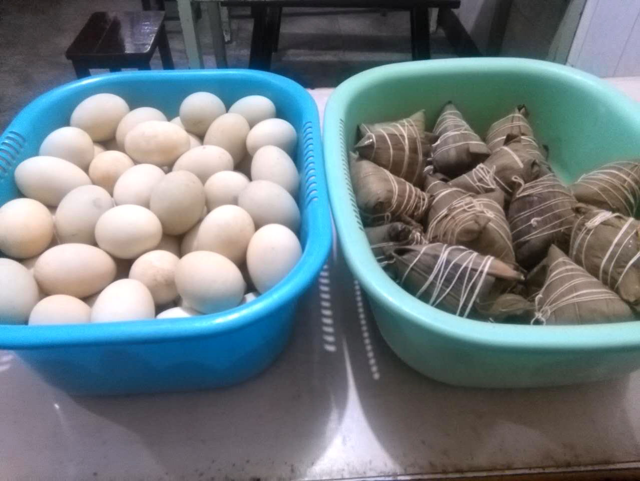 咸鴨蛋、肉粽、蛋黃粽:每天都要包,放爐子燒,在端午前后供應(yīng),很好吃。每天都有人打包幾個咸鴨蛋或者粽子拿回家,送人