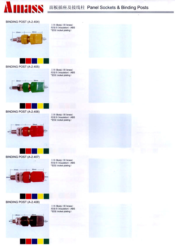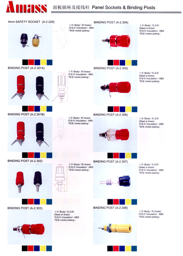 本公司專業(yè)生產(chǎn)各類香蕉插頭,香蕉插座,接線柱,電瓶夾,鱷魚夾,測試導(dǎo)線,測試筆等。產(chǎn)品分2mm/2.5mm/3mm/3.5mm/4mm五大系列,百余種款式, 各種香蕉插廣泛用于儀器、儀表、電力測試、教學(xué)、玩具,視聽設(shè)備、醫(yī)療儀器,保健產(chǎn)品等領(lǐng)域。公司技術(shù)力量雄厚,生產(chǎn)工藝先進(jìn),產(chǎn)品遠(yuǎn)銷港、臺(tái)、歐美,并與飛利浦等國際品牌配套。公司本著精益求精的理念,歡迎新老客戶光臨。 我們擁有資深的工程師和豐富的電子產(chǎn)品銷售經(jīng)驗(yàn),專業(yè)生產(chǎn)各類電子接插件產(chǎn)品。 香蕉插頭,香蕉插座,電瓶夾,鱷魚夾等品種齊全、 質(zhì)量可靠,致力服務(wù)于通訊、數(shù)據(jù)通信、消費(fèi)類電子產(chǎn)品、計(jì)算機(jī)和計(jì)算機(jī)外圍設(shè)備以及工業(yè)應(yīng)用等領(lǐng)域,能給客戶提供全面采購解決方案。 我們秉承穩(wěn)健作風(fēng)、誠實(shí)經(jīng)營、合理價(jià)格、完善服務(wù)的宗旨,在全體客戶的支持下,公司不斷創(chuàng)新進(jìn)取,業(yè)績蒸蒸日上,已與數(shù)十家電子零件制造商及其分支機(jī)構(gòu)建立密切合作關(guān)系,在國內(nèi)擁有數(shù)百家固定客戶。