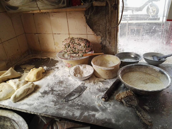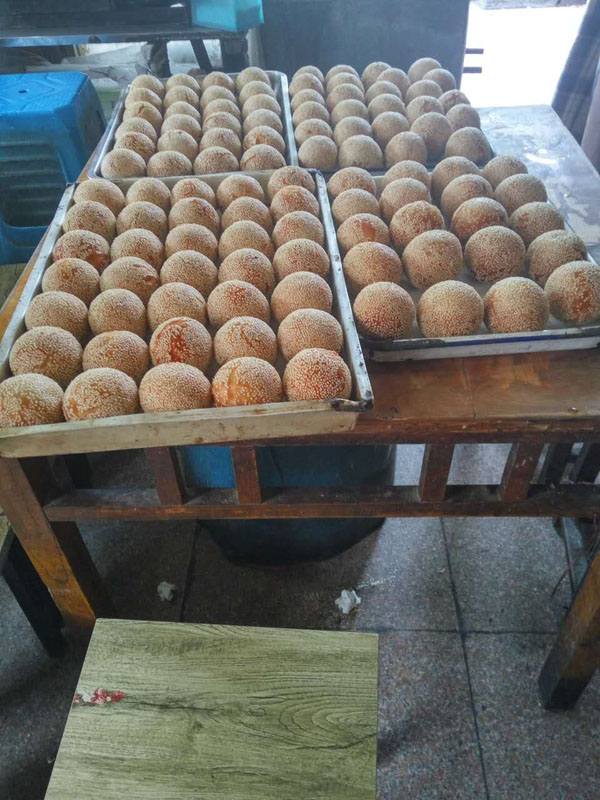 常州人夏亞寶的大麻糕技術(shù)是上世紀(jì)80年代更著新橋麻糕店的師傅周金生學(xué)的,1999年開(kāi)店至今,在附近一帶做得小有名氣,向?qū)W校供應(yīng)麻糕,整整6年。 “做大麻糕太辛苦,半夜爬起來(lái)準(zhǔn)備熱爐子、和面、做餡,年輕人吃不了這苦,15年我都沒(méi)請(qǐng)人,和老婆一起打過(guò)來(lái)的!毕膩唽氈钢直凵系臓C傷的痕跡說(shuō),能堅(jiān)持烤桶制作大麻糕的真心不多了。夏亞寶的烤桶是自制的,爐心常州買不到,他托人從無(wú)錫買來(lái),15年前85元一個(gè),前年漲到150元!翱就暗臓t心其實(shí)就是以前船上人家用的行爐”,去底后鑿個(gè)洞,然后外面加上隔熱材料,最后貼上鐵片”。 15年,這已經(jīng)是第三只貼桶了。