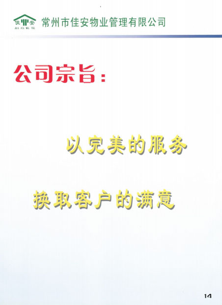 佳安物業(yè)管理有限公司位于常州市新北區(qū)薛家鎮(zhèn),2005年由薛家鎮(zhèn)黨委政府注冊成立,注冊資金50萬元,屬于三級資質(zhì)企業(yè)。成立之初,佳安物業(yè)作為政屬事業(yè)單位,主要負(fù)責(zé)管理薛家鎮(zhèn)順園新村安置小區(qū)。隨著薛家鎮(zhèn)經(jīng)濟(jì)和人口的發(fā)展,為主動適應(yīng)經(jīng)濟(jì)發(fā)展新常態(tài),全面深化物業(yè)綜合改革,打造具有薛家特色的物業(yè)公司,佳安物業(yè)由政府下屬的事業(yè)單位正式轉(zhuǎn)變?yōu)楠?dú)立運(yùn)營的企業(yè),并增資到1000萬元。 2017年6月,公司通過審核被評為“AAA”級信用企業(yè),同月,公司實(shí)施ISO9001質(zhì)量管理體系標(biāo)準(zhǔn),并于8月通過質(zhì)量體系認(rèn)證審核。2018年8月,公司通過了ISO14001環(huán)境管理體系、ohsas18001職業(yè)健康安全管理體系的認(rèn)證審核。 目前,公司主要承接小區(qū)物業(yè)服務(wù)及廠區(qū)外派保安服務(wù)、保潔服務(wù)等。現(xiàn)公司為薛家鎮(zhèn)順園一村至順園九村安置小區(qū)及奧林匹克花園、怡景名園2處商業(yè)小區(qū)提供物業(yè)服務(wù);為江南農(nóng)村商業(yè)銀行新北區(qū)所有支行、中車鐵馬、投資服務(wù)中心、華夏藝博園、薛家幼兒園、薛家小學(xué)及薛家中學(xué)等單位提供外派保安服務(wù);為薛家鎮(zhèn)中心廣場及松林別墅提供保安服務(wù);為華夏藝博園及投資服務(wù)中心提供保潔服務(wù)等。 在這十余年中,佳安物業(yè)與時(shí)俱進(jìn),銳意進(jìn)取,為地方建設(shè)發(fā)展注入動力,為居民和企業(yè)安全保駕護(hù)航,尤其是在實(shí)踐中,我們積極探索,正逐步摸索出一條適合薛家城鄉(xiāng)一體化建設(shè)的社區(qū)物業(yè)管理的新路。希望通過今天的分享,和大家一起探討我們在“管辦分離”等方面的實(shí)踐經(jīng)驗(yàn),并在此基礎(chǔ)上為薛家的可持續(xù)發(fā)展提供可借鑒、推廣的新型物業(yè)管理之路。