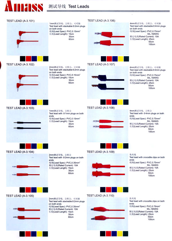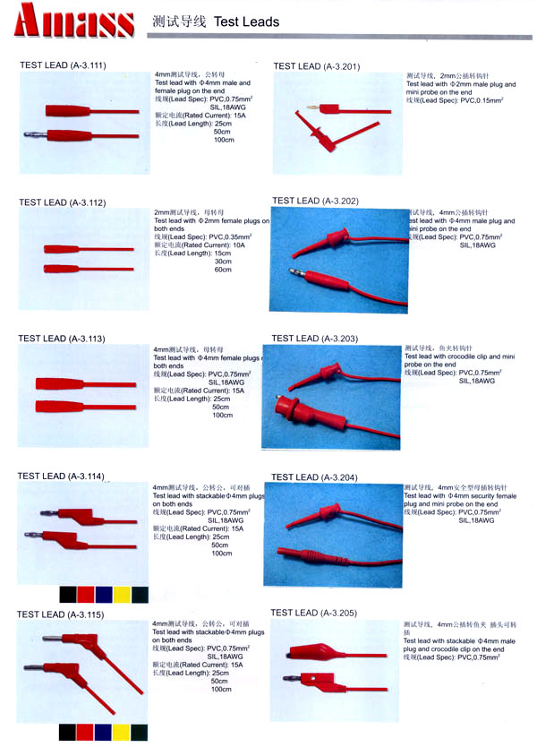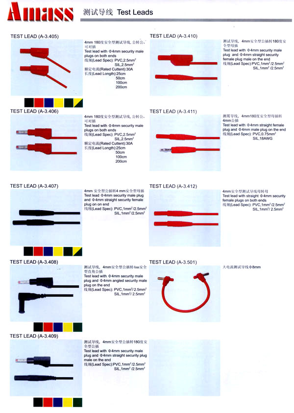 本公司專業(yè)生產(chǎn)各類香蕉插頭,香蕉插座,接線柱,電瓶夾,鱷魚夾,測試導線,測試筆等。產(chǎn)品分2mm/2.5mm/3mm/3.5mm/4mm五大系列,百余種款式, 各種香蕉插廣泛用于儀器、儀表、電力測試、教學、玩具,視聽設備、醫(yī)療儀器,保健產(chǎn)品等領域。公司技術力量雄厚,生產(chǎn)工藝先進,產(chǎn)品遠銷港、臺、歐美,并與飛利浦等國際品牌配套。公司本著精益求精的理念,歡迎新老客戶光臨。 我們擁有資深的工程師和豐富的電子產(chǎn)品銷售經(jīng)驗,專業(yè)生產(chǎn)各類電子接插件產(chǎn)品。 香蕉插頭,香蕉插座,電瓶夾,鱷魚夾等品種齊全、 質(zhì)量可靠,致力服務于通訊、數(shù)據(jù)通信、消費類電子產(chǎn)品、計算機和計算機外圍設備以及工業(yè)應用等領域,能給客戶提供全面采購解決方案。 我們秉承穩(wěn)健作風、誠實經(jīng)營、合理價格、完善服務的宗旨,在全體客戶的支持下,公司不斷創(chuàng)新進取,業(yè)績蒸蒸日上,已與數(shù)十家電子零件制造商及其分支機構建立密切合作關系,在國內(nèi)擁有數(shù)百家固定客戶。