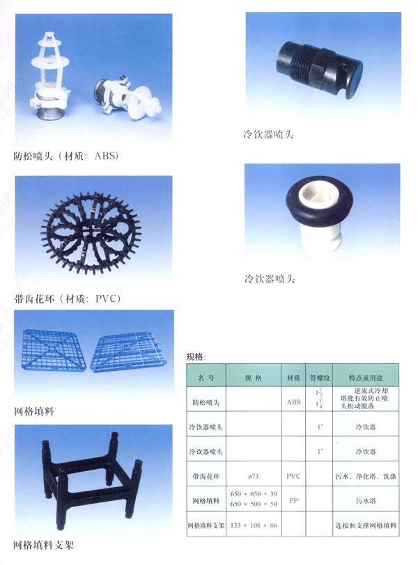 我廠專業(yè)生產(chǎn)各種環(huán)保設(shè)備配件,“鶴清”牌注冊商標(biāo)水處理設(shè)備及配件為“江蘇省市場公認(rèn)名牌產(chǎn)品”。產(chǎn)品銷往國內(nèi)二十多個(gè)省、市、自治區(qū),并遠(yuǎn)銷蘇丹、澳大利亞等國,深得用戶好評。二十多年來,我廠以“科學(xué)管理,技術(shù)領(lǐng)先,質(zhì)量第一,顧客至上”為宗旨,不斷創(chuàng)新。隨著科技的發(fā)展,我廠在中國電機(jī)工程協(xié)會(huì)冷卻塔專業(yè)委員會(huì)、中國水利水電科學(xué)研究院冷卻水研究所的大力支持和幫助下,產(chǎn)品有了很大的發(fā)展,并獲得了改進(jìn)型噴濺裝置和均濺式噴濺裝置兩項(xiàng)專利。最近本廠又研制生產(chǎn)了多種效率更高的塔用新型填料和收水器。塔用噴頭、塔芯填料、收水器、污水處理填料、濾水帽、曝氣頭等已有兩百多個(gè)品種,可供不同用戶選用。