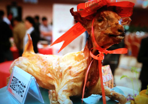 張萬(wàn)成羊莊一家綜合性的公司,下設(shè)酒店,羊產(chǎn)品加工廠,屠宰廠,山羊養(yǎng)殖場(chǎng)。 酒店位于常州西夏墅浦河村,酒店羊宴規(guī)模占地30畝,酒店主要經(jīng)營(yíng)特色全羊宴。 一個(gè)祖?zhèn)鞯臍⒀虼髴,傳到張萬(wàn)成,已是第六代了。張家的羊肉,素來(lái)以肉質(zhì)鮮美著稱(chēng),張萬(wàn)成羊莊的主人張建龍是第六代傳人,張家的羊肉素來(lái)以肉質(zhì)鮮美著稱(chēng),從常州新北區(qū)沿黃河西路往機(jī)場(chǎng)方向直行至羅溪右轉(zhuǎn),穿過(guò)滬寧高速高架橋后不遠(yuǎn)處左拐沿翠屏湖路直走便能看到張萬(wàn)成羊莊,酒店上下共有三層,2000多平方米經(jīng)營(yíng)面積,能同時(shí)接待近30桌客人的規(guī)模。有自己的羊圈和屠宰場(chǎng),每天殺20多只,菜式近100道。光是原料,就從原來(lái)羊身上的幾個(gè)主要部位,增加到除了羊牙齒以外的一只整羊全部可以入菜。烹制方式,更是在本土單一的燒、炒、煮基礎(chǔ)上,借鑒了東北、廣東、四川等地的烹羊特色,增加了蒸、涮、烤、煎、炸等多種方式。 注重原汁原味的冷菜 白切羊肉:精選羊頸部的活肉精制而成,肥瘦適中,絲毫沒(méi)有一般羊肉的膻味,沾少許張萬(wàn)成羊莊秘制的醬料,口感非常好。 美味羊舌:張家的羊舌感覺(jué)是用特殊的醬料腌制過(guò)的,咸中略有甜味,口感鮮嫩卻肥而不膩,味道很香。 除了白切羊肉和羊舌以外還有許多冷菜品種,如羊肚、羊心、羊耳朵等。。 火候控制精準(zhǔn)的炒菜 炒羊肝:地道的農(nóng)家風(fēng)味,與大蒜葉同炒,蒜香濃郁,羊肝鮮嫩,這羊肝可是火候菜,羊肝鮮嫩與否不但取決于廚師對(duì)火候的掌握,還在于上桌放置時(shí)間的長(zhǎng)短,所以羊肝上桌后要盡快食用,看羊肝是否鮮嫩,只需用筷子挑起并輕輕抖動(dòng),有彈性者為佳。 美味羊?qū)殻阂跃曼S、鮑味菇爆炒的羊?qū),說(shuō)是滋補(bǔ)壯陽(yáng)的一道金貴菜,配料講究的燒菜系列 宮廷燴羊肚:較為金貴的菜品,配菜貴于主料,是以名貴的素鮑和新鮮的筍絲與羊肚同煮,口感濃郁,營(yíng)養(yǎng)豐富。 海參白燒羊肉:將取自7個(gè)月大羔羊身上的帶皮腿肉與海參一同煨煮,菜肴美容滋補(bǔ),兩種鮮味互相補(bǔ)益達(dá)到完美交融狀態(tài),口感甚佳。 魚(yú)羊鮮:新鮮的青魚(yú)配上羊肉,既有本地羊肉的肥嫩,又有魚(yú)肉的鮮香,鮮!鮮!古代人造字就是有道理!”店里可以根據(jù)客人的需要配以魚(yú)回魚(yú)、鯰魚(yú)、鱖魚(yú)等。 特色的羊宴點(diǎn)心 羊肉餛飩:羊莊老板自創(chuàng)的羊宴點(diǎn)心,看似普通的油燜跑蛋卻另有乾坤,將蛋掀開(kāi)便能看見(jiàn)藏于其中的羊肉菜餡餛飩,菜和肉都是自家新鮮的原料,很好吃。 手工搟面:不知道是因?yàn)槊媸钦嬲檬止{制還是因?yàn)榧尤肓缩r味十足的羊湯,總之味道非常好,面勁道,湯也鮮美! 張萬(wàn)成羊莊的羊湯也是遠(yuǎn)近聞名,因?yàn)槭亲鎮(zhèn)鞯氖炙,做出?lái)的羊湯不腥不膻,香醇不膩,味道十分鮮美,加入粉絲或者面條更是難得的美味。