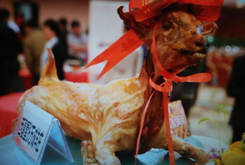 張萬成羊莊一家綜合性的公司,下設(shè)酒店,羊產(chǎn)品加工廠,屠宰廠,山羊養(yǎng)殖場。 酒店位于常州西夏墅浦河村,酒店羊宴規(guī)模占地30畝,酒店主要經(jīng)營特色全羊宴。 一個祖?zhèn)鞯臍⒀虼髴,傳到張萬成,已是第六代了。張家的羊肉,素來以肉質(zhì)鮮美著稱,張萬成羊莊的主人張建龍是第六代傳人,張家的羊肉素來以肉質(zhì)鮮美著稱,從常州新北區(qū)沿黃河西路往機(jī)場方向直行至羅溪右轉(zhuǎn),穿過滬寧高速高架橋后不遠(yuǎn)處左拐沿翠屏湖路直走便能看到張萬成羊莊,酒店上下共有三層,2000多平方米經(jīng)營面積,能同時接待近30桌客人的規(guī)模。有自己的羊圈和屠宰場,每天殺20多只,菜式近100道。光是原料,就從原來羊身上的幾個主要部位,增加到除了羊牙齒以外的一只整羊全部可以入菜。烹制方式,更是在本土單一的燒、炒、煮基礎(chǔ)上,借鑒了東北、廣東、四川等地的烹羊特色,增加了蒸、涮、烤、煎、炸等多種方式。 注重原汁原味的冷菜 白切羊肉:精選羊頸部的活肉精制而成,肥瘦適中,絲毫沒有一般羊肉的膻味,沾少許張萬成羊莊秘制的醬料,口感非常好。 美味羊舌:張家的羊舌感覺是用特殊的醬料腌制過的,咸中略有甜味,口感鮮嫩卻肥而不膩,味道很香。 除了白切羊肉和羊舌以外還有許多冷菜品種,如羊肚、羊心、羊耳朵等。。 火候控制精準(zhǔn)的炒菜 炒羊肝:地道的農(nóng)家風(fēng)味,與大蒜葉同炒,蒜香濃郁,羊肝鮮嫩,這羊肝可是火候菜,羊肝鮮嫩與否不但取決于廚師對火候的掌握,還在于上桌放置時間的長短,所以羊肝上桌后要盡快食用,看羊肝是否鮮嫩,只需用筷子挑起并輕輕抖動,有彈性者為佳。 美味羊?qū)殻阂跃曼S、鮑味菇爆炒的羊?qū)殻f是滋補(bǔ)壯陽的一道金貴菜,配料講究的燒菜系列 宮廷燴羊肚:較為金貴的菜品,配菜貴于主料,是以名貴的素鮑和新鮮的筍絲與羊肚同煮,口感濃郁,營養(yǎng)豐富。 海參白燒羊肉:將取自7個月大羔羊身上的帶皮腿肉與海參一同煨煮,菜肴美容滋補(bǔ),兩種鮮味互相補(bǔ)益達(dá)到完美交融狀態(tài),口感甚佳。 魚羊鮮:新鮮的青魚配上羊肉,既有本地羊肉的肥嫩,又有魚肉的鮮香,鮮!鮮!古代人造字就是有道理!”店里可以根據(jù)客人的需要配以魚回魚、鯰魚、鱖魚等。 特色的羊宴點(diǎn)心 羊肉餛飩:羊莊老板自創(chuàng)的羊宴點(diǎn)心,看似普通的油燜跑蛋卻另有乾坤,將蛋掀開便能看見藏于其中的羊肉菜餡餛飩,菜和肉都是自家新鮮的原料,很好吃。 手工搟面:不知道是因為面是真正用手工搟制還是因為加入了鮮味十足的羊湯,總之味道非常好,面勁道,湯也鮮美! 張萬成羊莊的羊湯也是遠(yuǎn)近聞名,因為是祖?zhèn)鞯氖炙嚕龀鰜淼难驕恍炔浑,香醇不膩,味道十分鮮美,加入粉絲或者面條更是難得的美味。